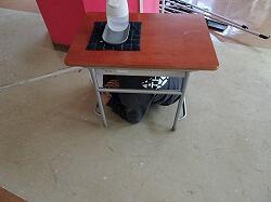 今週は「清掃強化週間」でしたが、今日は、最後の「大掃除」です。まずいつものように、昼休みのうちに、ワックスをかける部屋の机・椅子などを高学年の児童が外に出します。