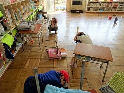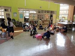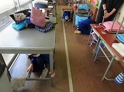 頭をかばう姿勢と静かにその場で待つことはしっかりできました。前回は解除の放送前に動き出しておしゃべりを始めてしまったという反省があったのですが、今日は、反省が生きていました。