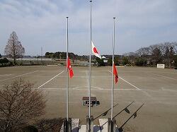 今日は、東日本大震災の日です。5年生が、朝、半旗を掲揚しました。