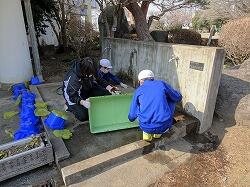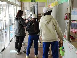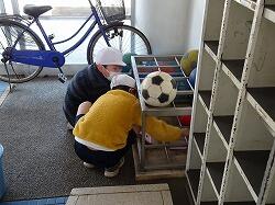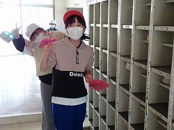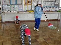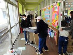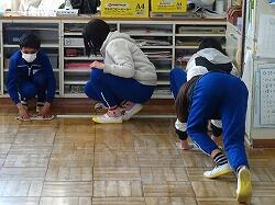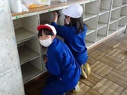 1年生は、教室やくつ箱の片づけを行っていました。大掃除の時もやっていたのですが、今回は、次に入学してくる「新入生のためにやってるんだ。」と説明してくれました。「こんなに雑巾が真っ黒だー」とか言いながら一生懸命やっていました。くつ箱だけでなく、傘置き場もやっていました。1年生もしっかりしてきました。