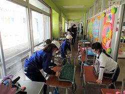 今年度最後の給食を食べた後、各クラスの机・椅子の移動を行いました。