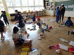 一生懸命やっていました。教室の荷物の整頓などもやったせいか、帰るときにたくさんのものを持ち帰っている人もいました。また、教室をきれいにしたので、広場で帰りの会をやっているクラスもありました。