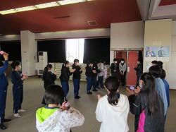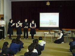 中学校の紹介や行事の様子を写真を使って説明してくれた後、劇をやって中学校生活の様子を紹介してくれました。そのあとはグループにわかれて質問タイムです。中学生は丁寧に答えてくれました。