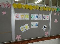 きれいに出来上がったところに6年生が入ってきて、「私たちのために会場準備ありがとう」とお礼を言います。すると3~5年生が、6年生にエールを送りました。もう、卒業式が成功したような気がしました。きっと明日、在校生も卒業生も立派な態度で式に臨んでくれると思います。3~5年生ご苦労様でした。