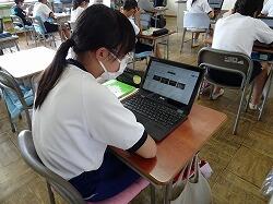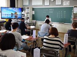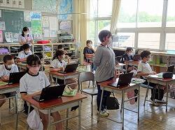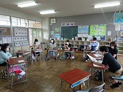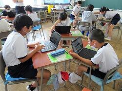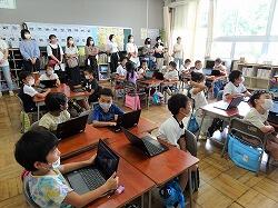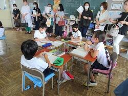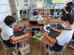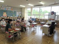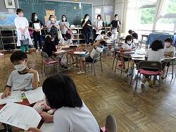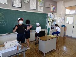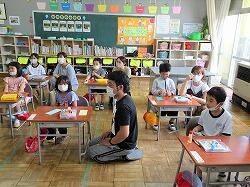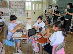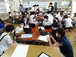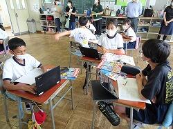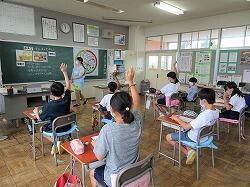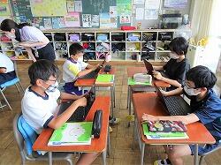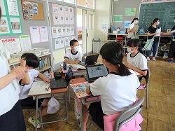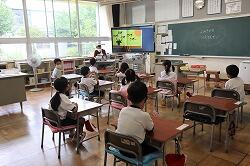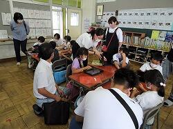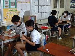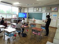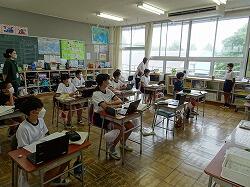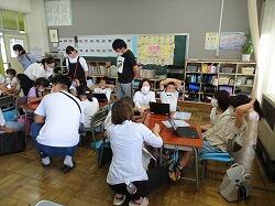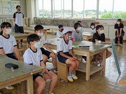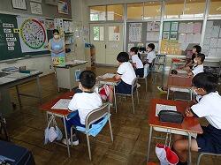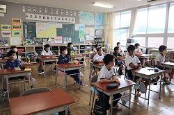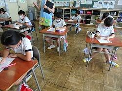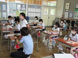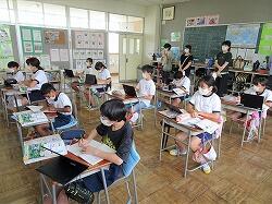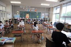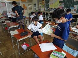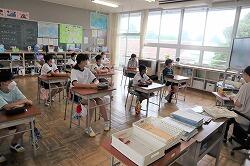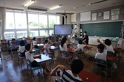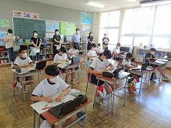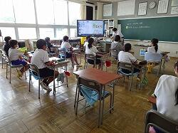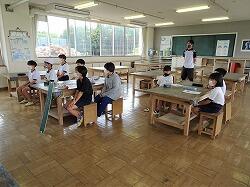 ちょうど始まったころから1時間ぐらい、電気設備点検のため1時間ほどの停電があり、エアコンが止まってしまいましたが、児童は静かに学習に取り組んでいました。でも、エアコンのありがたさは感じていたようです。