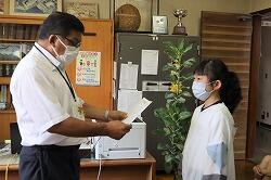 担任から賞賛や励ましの言葉を伝えながら渡されていたようです。通知表を見て、自分がさらに頑張る必要のあるところを見つけて、夏休みに復習したりしてほしいと思います。所見については、個人懇談の際に伝えます。保護者の方はその時にお聞きいただくようよろしくお願いします。