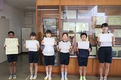 今日の朝会は表彰伝達です。県の陸上記録会で入賞した児童やノートコンクールの各クラスの代表児童が表彰されました。