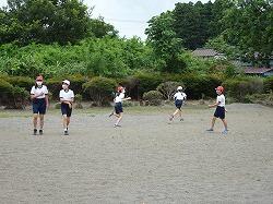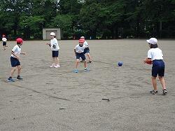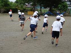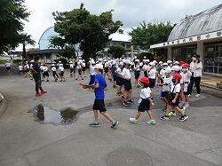 南校庭では「警ドロ」「色鬼」「交換鬼」などの鬼ごっこをやっていました。北校庭では、「ドッジボール」と「バナナ鬼」というのをやっていました。捕まるとバナナの格好で両手をあげて止まります。仲間がタッチしてくれると片手を下ろせて、2回タッチしてもらうと両手を下ろして、また参加できるのだそうです。いろんな遊びがあるなあと感心していました。みんなで楽しい集会ができました。今日は気温がやや低くてよかったです。