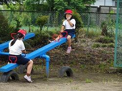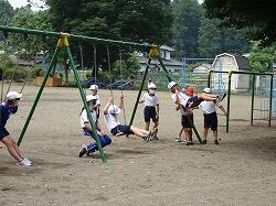 南校庭では、ブランコやシーソーのほかに、茂みの中に集まっていました。虫取りでしょうか。実は、担任は虫を苦手としているのですが、子ども達は大好きなようです。