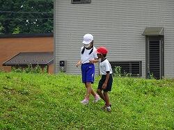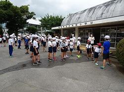 今日の熱中症指数は低く、熱中症警戒レベルも10時の段階では、金曜日より3段階低い状況でした。ただ、結構蒸し暑さは感じますが、児童は元気に、業間の時間に早速外遊びを再開していました。