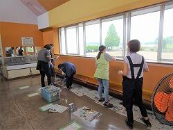 夏休みに入りましたが、さいこうクラブの方が来て、廊下の塗料塗り直しをしてくださっています。
