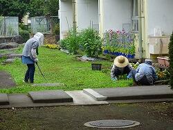 学校評議員や民生委員をしている方々が除草にきてくださり、花壇や農園の周辺などをきれいにしてくださいました。