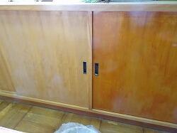 とりあえず、表面が白っちゃけてるところを塗ってもらったのですが、塗ったところが右側で、左側が塗らなかったところです。あまりにつやが違うので、残りの戸棚は、夏休みの宿題として自分で塗りたいと思います。