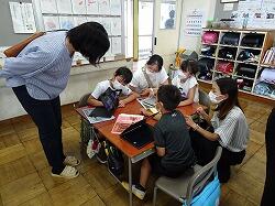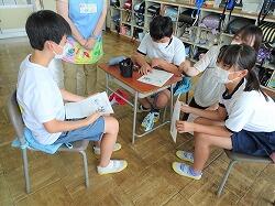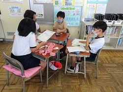 社会科の学習です。聖徳太子が行ったことを調べて、自分の班に戻って説明するという「ジグソー学習」を行っていました。うまく自分の班の人に考えを伝えられたでしょうか。