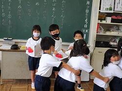 終わると農園にまっしぐらに行く児童がいました。収穫のよろこびに目覚めたのでしょうか。枝豆やミニトマトをとっていました。今日は最終日なので、上履きや防災頭巾を持って帰りました。残りの夏休み感染症やけがに注意して安全に過ごしてほしいと思います。