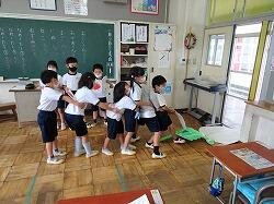 今日の業間は「縦割り共遊」で3年生の考えた遊びでした。
