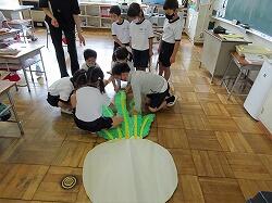 グループでも意見を出し合って考えていました。なぜそう思ったかの理由も述べるようにしています。そのあと自分たちのグループの考えを他のグループと発表しあって、さらに深めていました。科学教育センターの先生は、「いい授業見せてもらいました。」と言っていました。担任が、エコー写真などの資料を準備した甲斐があった授業になったようです。