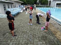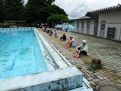 プールは、水温26度・気温31度ということで、朝のうちなら大丈夫と、5・6年生が入っていました。間に休憩を入れて、水分補給もして入っています。