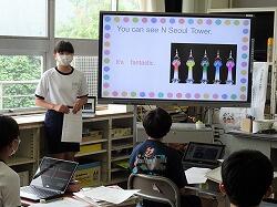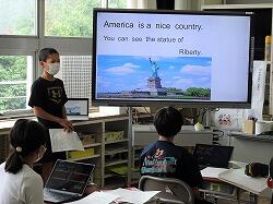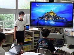 今日は6年生が外国語の授業でプレゼンテーションを行うというので見学しました。海外の国の様子を調べ、写真を使って資料を作り、みんなにその国の様子を英語でプレゼンテーションしていました。