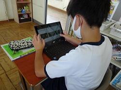 町探検をタブレットを使ってまとめていました。保護者の方も隣で見ていました。タブレットにもずいぶん慣れてきたようです。