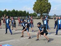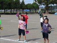 運動会がスタートしました。はじめの種目は、応援合戦です。子供たちの絆を見ました。