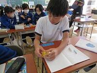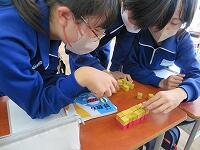 6年生の算数「角柱と円柱の体積」の学習をしました。直方体の体積を考えるために、ブロックを使用して、操作的に学習をしました。操作的に学習を進めることで、量感を育てたり、式の意味を考えたりすることができるといわれています。直方体の体積の求め方を考える「さいこうのこ」がいました。