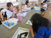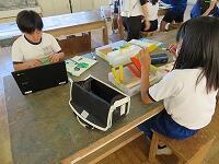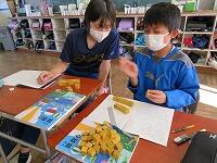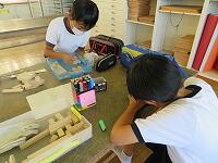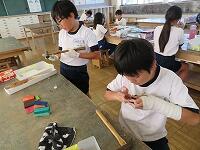 4年生の図工「ギコギコトントン」の学習をしました。ノコギリを使って木を切ったり、金づちを使ってくぎを打ったり、ドキドキしながら学習を進めていました。切り終わった子は、色を着けて完成に向けて、頑張っていました。どんな作品ができるでしょうか?「さいこうのこ」には、最後まで安全に気を付けて取り組んでほしいものです。