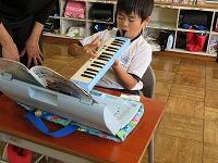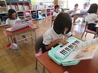 2年生の音楽「曲の感じを生かして演奏しよう」では、「こぎつね」を鍵盤ハーモニカを使って演奏しました。少しずつ進めながら、楽しそうに演奏していました。「こぎつね」らしい、かわいらしい演奏をする「さいこうのこ」がいました。
