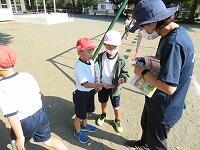 次の種目は、「台風の目」です。保護者と子供たちで頑張ります。上手に回ることができたチームは、どのチームでしょう。