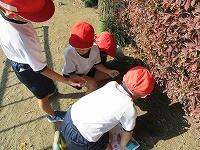 1年生の国語「はっけんしたよ」の学習をしました。校庭に出て、いろいろなものを発見しに行きました。林の中や草むらの中、土の中など、自然豊かな大内西小学校なので、何か見つけられるといいですね。「アリジゴクがいたよ。」と見せてくれる子がいました。色は?形は?足は何本あるかな?さわった感じは?など、発見メモにつながるように観察をしていました。楽しそうに学習を進める「さいこうのこ」がいました。