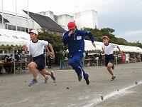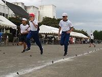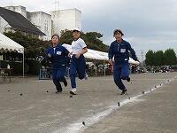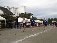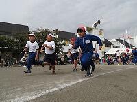 次の種目は、ジャンボリミッキー玉入れです。子供たちと大人の人が協力して競技をしました。今年は、37対38で赤が勝ちました。