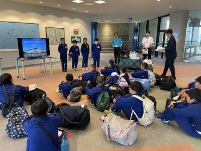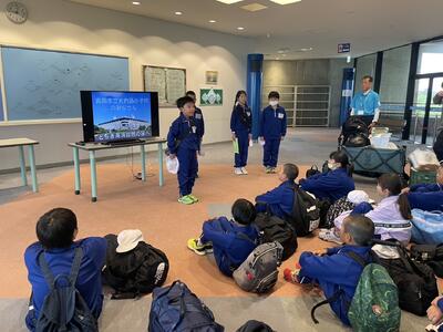 海浜自然の家に無事到着しました。オリエンテーションの様子です。外は風があり少し寒いようです。