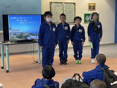 朝の会の前に教職員の読み聞かせがありました。大内西小学校には、「学校司書の読み聞かせ」「さいこうクラブの読み聞かせ」「ひばりの会の読み聞かせ」「教職員の読み聞かせ」と、本に触れ合える機会がたくさんあります。読書することで、心が豊かになり、知識が広がります。たくさんの本と出会えることを願っています。