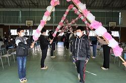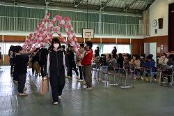 6年生が花のアーチをくぐって入場です。5年生が進行を務めました