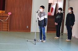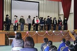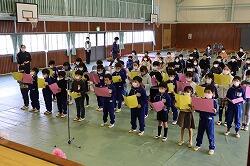 5年生の代表がお礼の言葉を述べた後、各学年から6年生へのメッセージです。1・2年生からです。