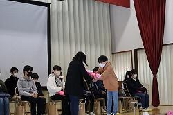 盛り上がってきたところで、在校生から6年生に記念品と花束贈呈です。