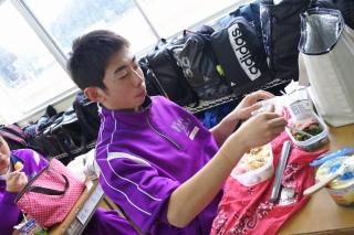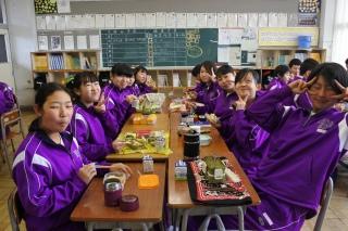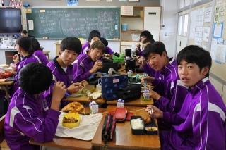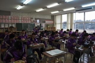 インフルエンザ予防のため、前を向いて食べたクラスもありました。