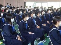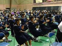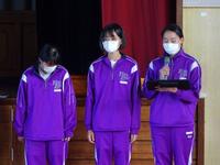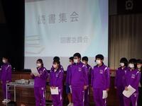 前回延期になった生徒集会が行われました。今回は、放送委員会と図書委員会が担当でした。放送委員会では、普段の活動やリクエストの仕方などの説明がありました。図書委員会では、多読賞の発表などが行われました。また、図書館司書の先生から新着図書などの紹介がありました。最後に、学習生活委員会から駐輪場の使い方についての説明がありました。