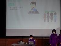 5校時にりんどうの会の皆さんによる読み聞かせ会がありました。読み聞かせとプレゼンテーションソフトによるイラストとキーボードによる音楽を組み合わせてくれるため、読んだ内容が非常にわかりやすかったです。また、生徒たちも真剣に話を聞き、感動していました。