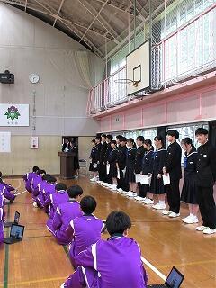 「この会は、会員の自発的・自治的な意志によって運営し、明るく楽しい学校生活を送ることができるようにする」本校生徒会会則の目的です。生徒会本部役員や各種専門委員会から、昨年度の活動報告や今年度の活動計画が発表されました。今年度の生徒会スローガン『 We are challengers ~がんばりの精神 山中から日本へ~ 』を胸に、全校生徒の皆さんが活躍できることを願います。