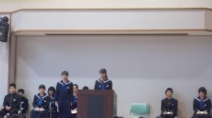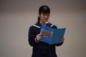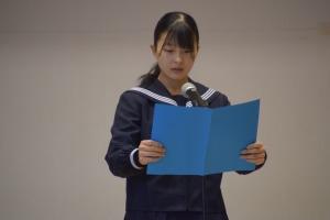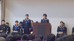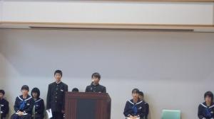 誓いの言葉の様子です。 歓迎の言葉の様子です。