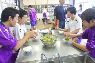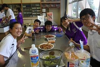 お家からもってきたハムやパン、肉、ご飯などと一緒に食べました。