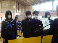 終業式の後に、校内駅伝大会の表彰と各種表彰(読書感想文、下野教育書道展、税についての作文、県南地区アンサンブルコンテスト、市中学校親善野球大会、市長賞)表彰を行いました。校内駅伝大会は、実行委員長より賞状を授与しました。