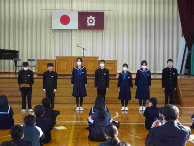 第3学期始業式・学級委員任命式・新生徒会役員紹介