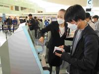 8時過ぎに羽田空港第3ターミナルに到着しました。出国のため飛行機にのるための手続きをしました。みんな緊張して搭乗手続きをしています。
