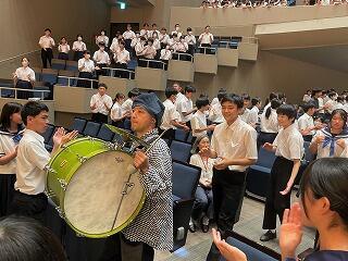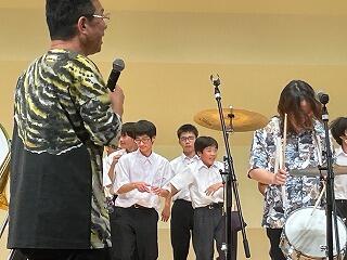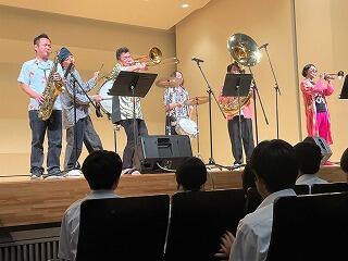 真岡市内全中学校の2年生が参加した移動音楽教室。例年行われているこの行事は、優れた音楽を直接鑑賞することで芸術に触れる喜びを体験できるよう、栃木県教育委員会が主催しています。今年度は、『Let's Swing ブラックボトムブラスバンド演奏会』。1993年に関西で結成されたブラスバンドで、国内外の様々な場所でフェスに参加するなど活躍されています。明るく楽しい、リズミカルな楽曲で、生徒たちもステージに上がるなど、大いに盛り上がりました。