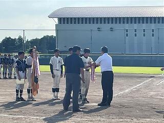 晴天の下、芳賀郡市総体野球大会の決勝。「大内・山前・七井・市貝合同チーム」は茂木中と決勝を戦い、5対2で勝利し見事優勝を手にしました。合同チームのため、限られた時間の中での全体練習の成果を、この一戦に発揮しました。各学校の選手、保護者、そしてスタンドを埋め尽くした応援団。全てが一丸となった結果だと思います。関係の皆さん、おめでとうございます。県大会というステージで、また挑戦し続けてほしいと願います。