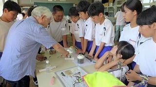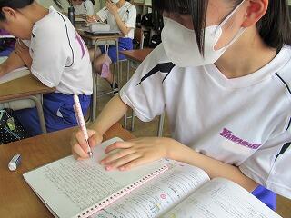先週末から水泳の授業が始まりました。安全面を考慮しながら、泳力が向上するよう指導しています。理科の授業(1年生)では、「物質の性質を調べる」学習です。実験器具の正しい使い方を聞いています。