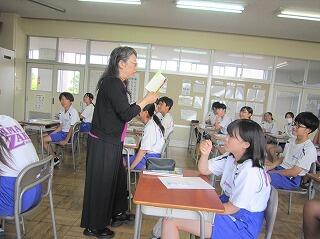 2年生の国語の授業「図書教材に関する学習」で、本校の司書さんから読書の効果やオススメの1冊などを紹介していただきました。夏休み中には、図書の貸し出しも行っています。暑い時期ですが、涼しいところで心の栄養補給をしてみませんか。
