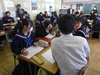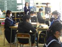 本日、2~4校時にかけて全クラスで研究授業が行われました。外部から研修のための先生が多数来校し、本校の授業の様子を見ていきました。来校された先生からは生徒の授業を受ける姿が大変素晴らしいとお褒めの言葉をいただきました。この授業に意欲的に取り組む姿勢を今後も続け、生徒一人一人のさらなる学力アップにつながるようにしていきたいと思います。